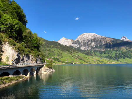 Lake Walensee, between the mountain ranges of Churfirsten and Seeztal subalpine valley, Walenstadtberg - Canton of St. Gallen, Switzerland (Kanton St. Gallen, Schweiz)