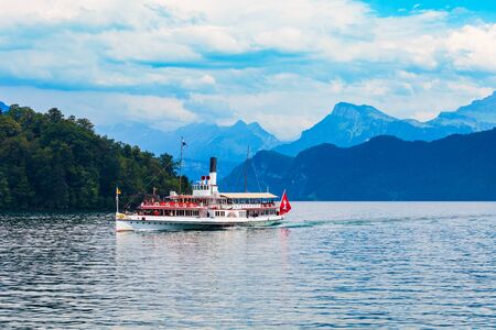 Tourist cruise boat on Lucerne Lake near Lucerne or Luzern city in central Switzerland