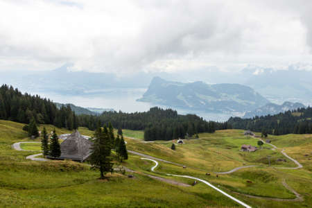 Swiss Alps near Burgenstock with the view of Vierwaldstattersee and Rigi mountain, Switzerland, Europe.