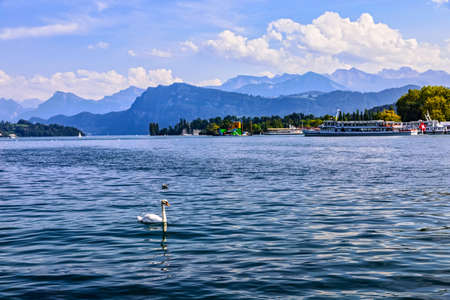 Lucerne, Switzerland, panoramic view of the Lucerne lake with the Alpine mountains in the background