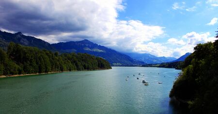 Beautiful mountain with blue sky, Lake Thun, Switzerland