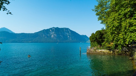 View of the beautiful lake Vierwaldstattersee, Gersau Switzerland