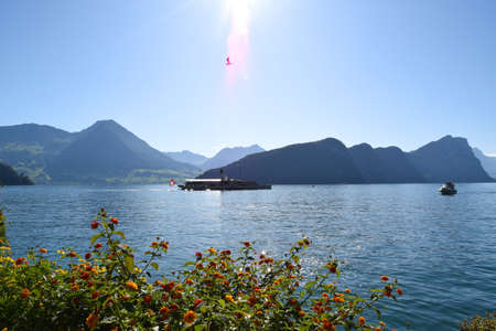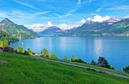 Panoramic view of Alps next to Lucerne in a beautiful summer day, Switzerland