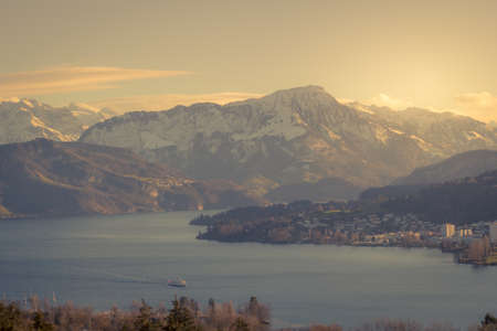Sunset over Lake Lucerne, Switzerland. Panoramic view
