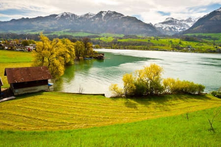 Part view of Lake Walen, a Swiss lake, which to the cantons of Glarus and St. Gallen