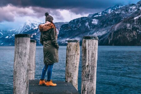 Girl expecting a thunderstorm, Brunnen Switzerland