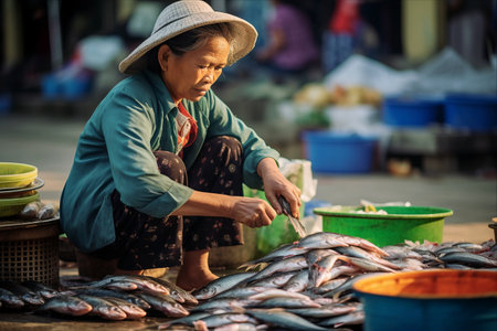 The Vibrant Street Vendor Scene at Cat Ba Island's Traditional Fish Market in Vietnam