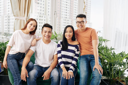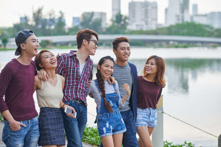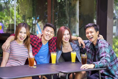 Group of diversity Asian friends smiling and taking a photo together. happy moment, friendship, togetherness