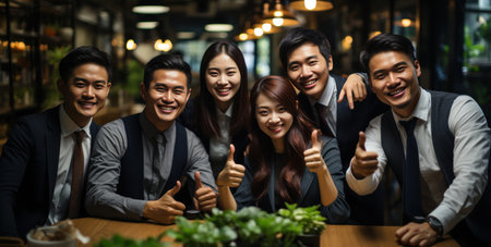 Generative AI : Banner of Group asian employee are standing and looking at camera with feeling confident at workplace company Portait of Asian creative team posing in workspace