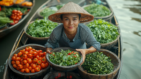 Unidentified Thai woman selling vegetables at Damnoen Saduak floating market