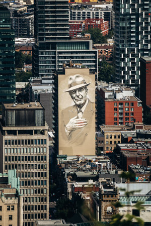 Montreal, Canada - August 15, 2025: Large mural on a building facade seen from Kondiaronk Belvedere