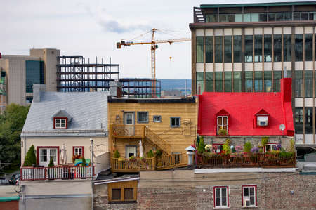 QUEBEC, CANADA – AUGUSTUS 21, 2010: Some typical houses from the old town and buildings in construction in the background in Quebec, Canada