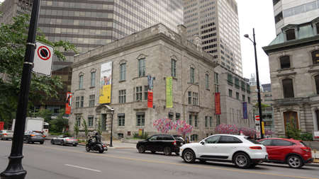 Montreal, QC/Canada - 6/26/2020: a combination of old and modern architecture at the same scene, the historical building of McCord museum with a background of a modern building of McGill univeristy.