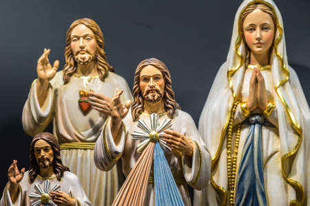 BOLOGNA, ITALY - FEBRUARY 18, 2019: lights are enlightening statues at stand of DOLFI in DEVOTIO Religious products and service exhibition