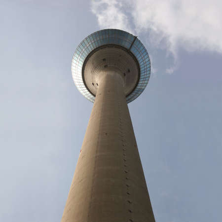 The televison tower Rheinturm of Düsseldorf in Germany, low angle view.