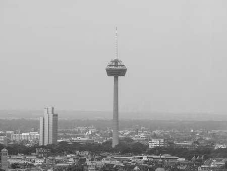 KOELN, GERMANY - CIRCA AUGUST 2019: Colonius (television tower) in black and white