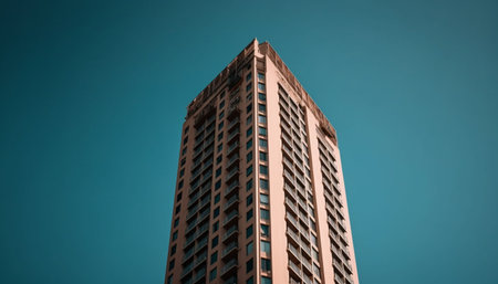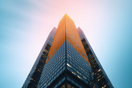 Stunning sunset over towering skyscraper a breathtaking urban architectural photography scene