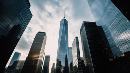 Sleek skyscraper tower soaring in urban cityscape, business architecture exterior.