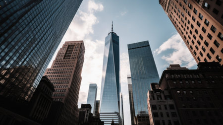 A low angle shot of a skyscraper in New York City.