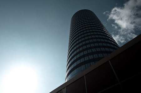 Tall building with sun flare