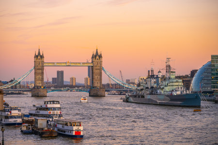 Tower bridge at beautiful sunset. One of the most popular landmark in London, United Kingdom