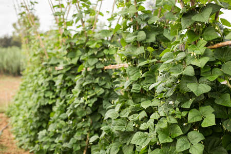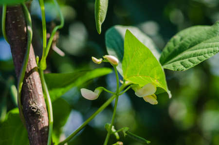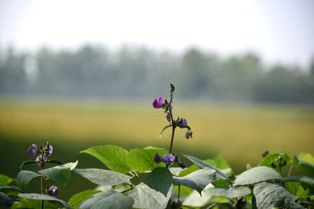 field of Vigna, during the formation of the harvest. Flowering and swelling of beans in pods