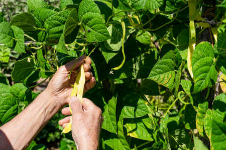 An farmer shows Fresh and clean Green Beans (Seem Bichi) brought from a new field at Bogra, Bangladesh.