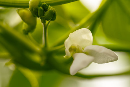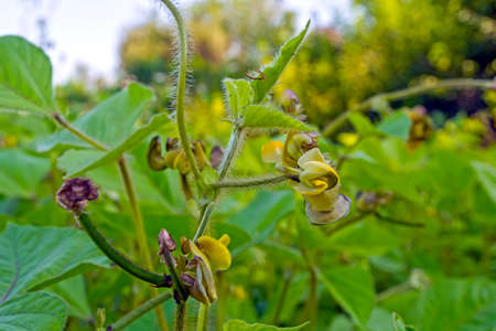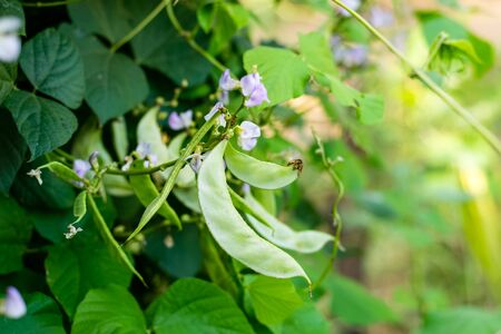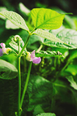 Bean flowering, agriculture, green vegetables. Nutritious and sustainable food