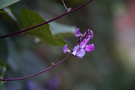 The small, delicate bean flower has a butterfly shaped, pea like structure with five petals in white, pink, purple, or blue. Growing in clusters on slender