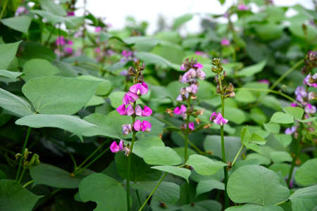 field of Vigna, during the formation of the harvest. Flowering and swelling of beans in pods.