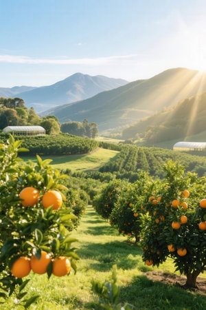 Golden sunlight bathes rolling vineyard rows at sunset, creating a breathtaking, peaceful scene. The landscape is serene and the light is magical.