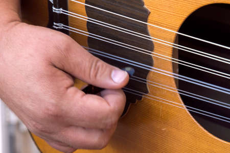 hands of a musician playing the lute in Greece