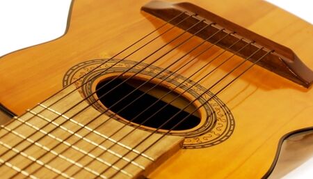 Charango, sound hole of stringed acoustic instrument with 10 strings
