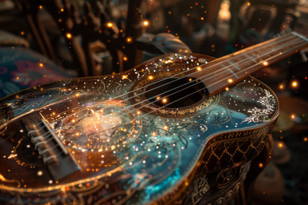 A cosmic charango vibrating with cosmic energy AI generated