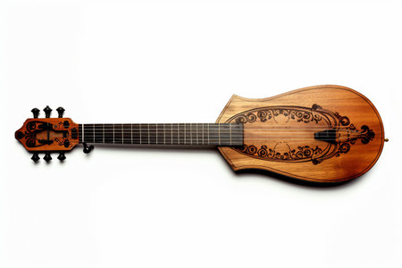 the dulcimer, a traditional stringed musical instrument, sits elegantly against a pristine white background, showcasing its intricate craftsmanship and delicate curves, evoking a sense of nostalgia and simplicity, perfect for music enthusiasts and those who appreciate folk art and cultural heritage. ai generated