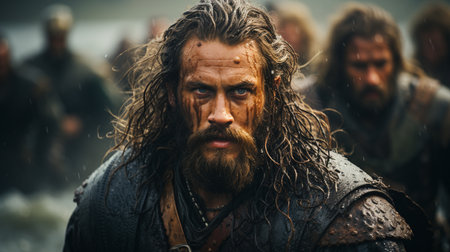 Portrait of a Viking warrior from Scandinavia. Viking war, Generative AI
