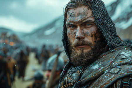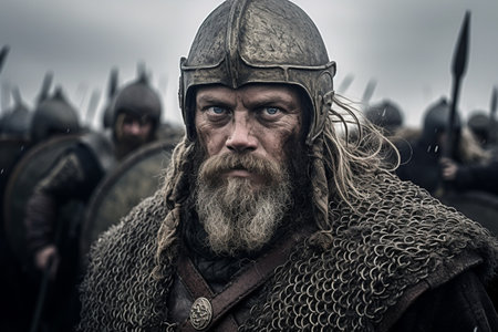 Portrait of a Slavic male warrior in a chain mail: the image of a strong and courageous image of a warrior, embodying the ancient Slavic culture and the spirit of warriorhood