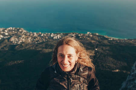 woman model travel tourism mountains oceans high cliffs