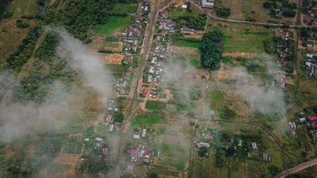 forest village snapshot from behind the clouds. Russian Federation