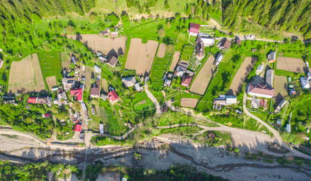 aerial scene of countryside village in Romania. top view
