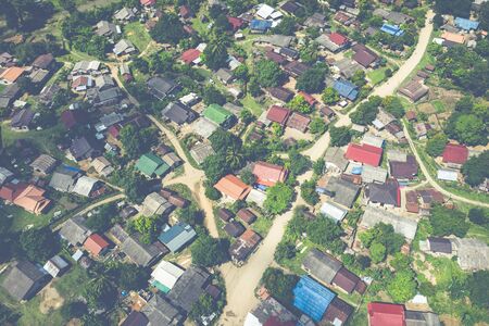 Thailand- The local village Isaan aerial view house roof from drone.