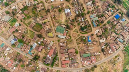 A view from the top of a traditional African village. Aerial view of a village in Africa.