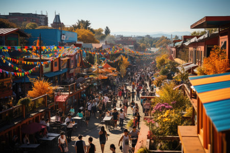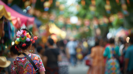 Someone enjoying a summer festival with crowds of people and colorful decorations. with Generative AI