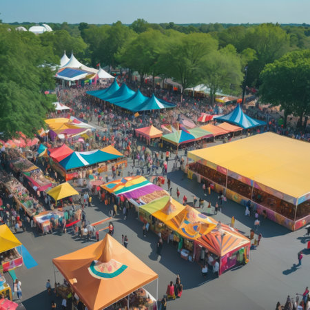 Aerial View of a Bustling Outdoor Festival