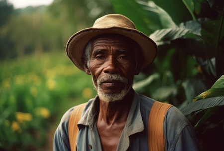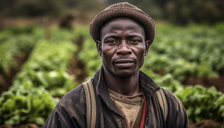 Resilient Black farmer worker portrait. Happy person. Generate Ai