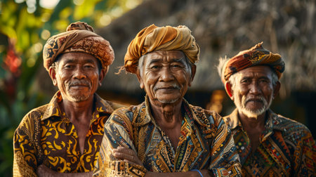 A group of Indian Muslim men sit together in a village, engaged in conversation and sharing stories, reflecting community bonds and traditions at dusk.
