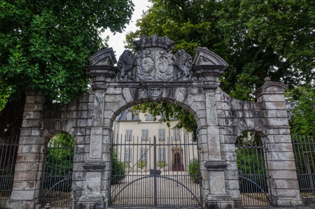 Gate of a historical castle in the old center of Nassau by the river Lahn