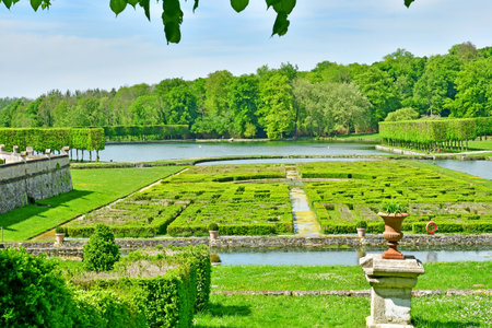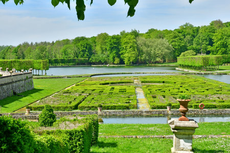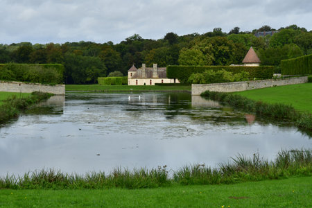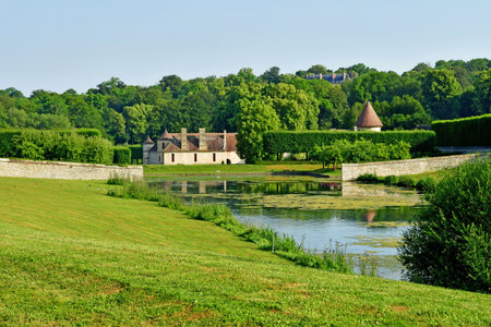 Chaussy, Villarceaux, France - june 20 2020: the historical castle park