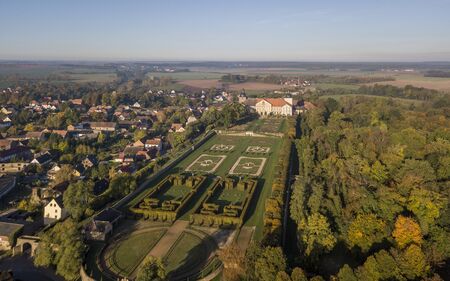 Aerial view of Hundisburg Palace and Baroque Garden in Saxony-Anhalt, Germany