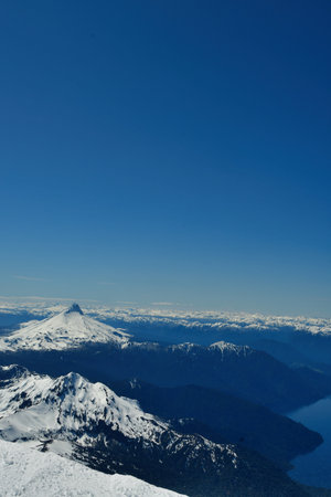 View from Osorno Vulcan to Puntiagudo peak winter snow. High quality photo